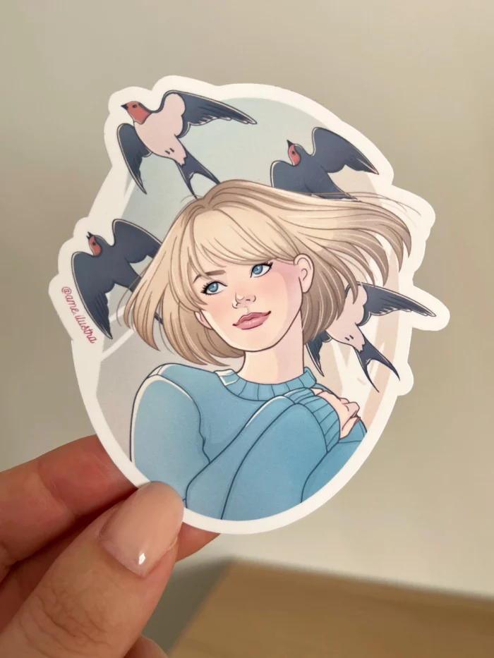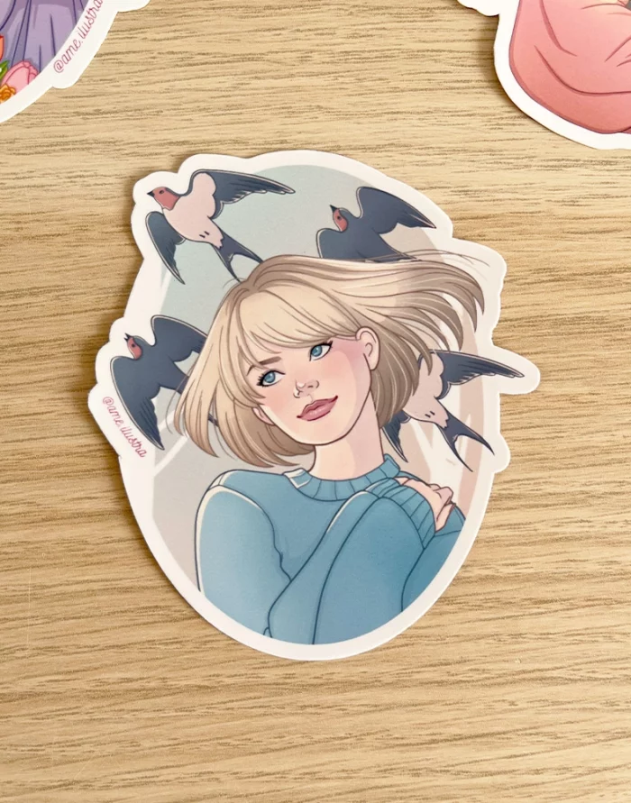 Ilustración original a todo color que captura la esencia de la esperanza y la renovación. La protagonista es una joven rubia en un encantador escenario invernal, acompañada de elegantes golondrinas que simbolizan la esperanza y los nuevos comienzos.