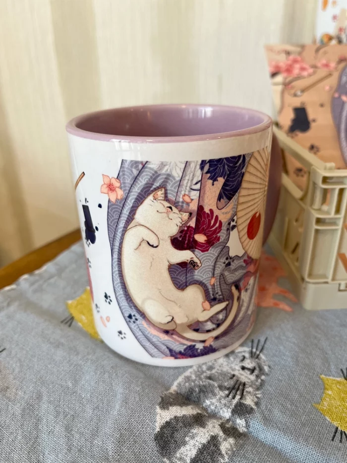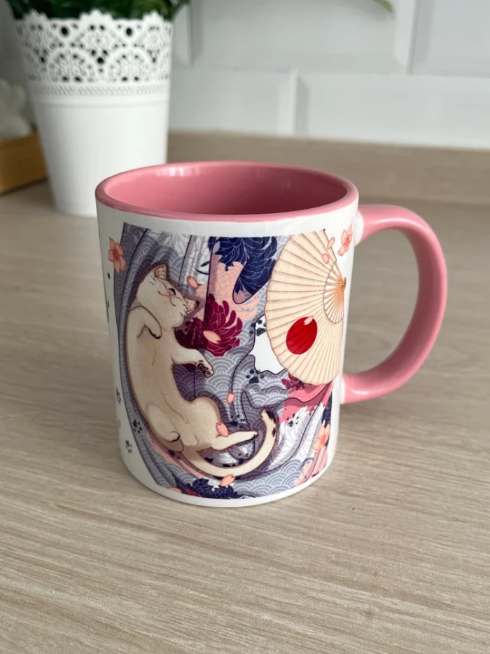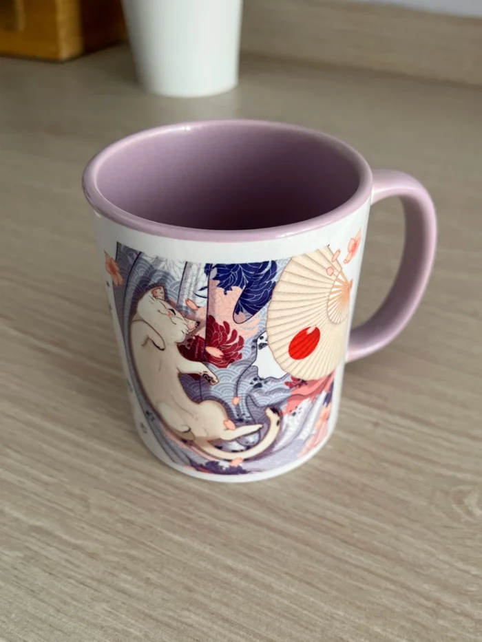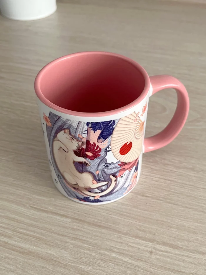 ◆ Taza blanca de alta calidad con impresión por sublimación de imagen. Disponible con interior en color malva o rosa.